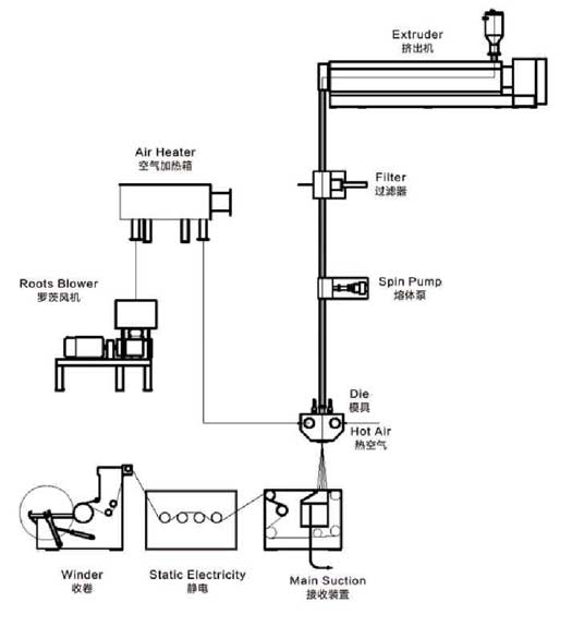 漢諾工業(yè)泵HNP熔體計量泵為國內(nèi)熔噴無紡布生產(chǎn)企業(yè)提供優(yōu)質(zhì)的計量、過濾設(shè)備。熔噴布生產(chǎn)工藝流程:原材料---->熔融擠出---->過濾---->計量(HNP熔噴布計量泵)---->空氣加熱壓縮---->熔噴---->成網(wǎng)---->收卷。